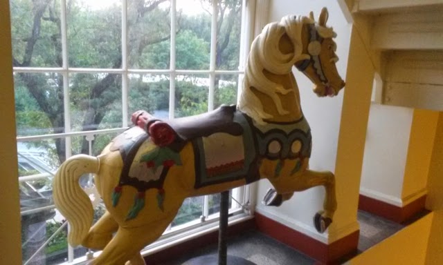 | A horse from the carousel, on display in the stairwell |