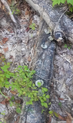 I kept going, hoping against hope that there would be an option to turn off into the woods. Meanwhile, the flies were buzzing constantly in my ears, which was maddening. Flailing at them didn't help. Moving faster didn't help. Staying out of the shadow of the pipeline didn't help. How I wished for bug repellent! But I eventually discovered that if I raised my arms over my head, so that my backpack blocked the back of my neck and my arms were sort of covering my ears, the buzzing stopped. This is a tiring position to hold for any length of time, unfortunately, even if one rests one's forearms atop one's head. But every time I stopped, the flies came back. Sigh.